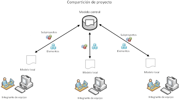 La posibilidad de uso compartido permite que varios integrantes de un equipo usen simultáneamente el mismo modelo de proyecto.
