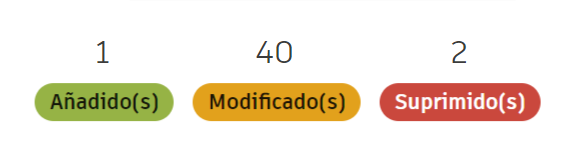 En la paleta, se muestra una descripción general de los cambios, clasificados en estas tres categorías: objetos añadidos, modificados y suprimidos. Abajo puede verse un ejemplo: