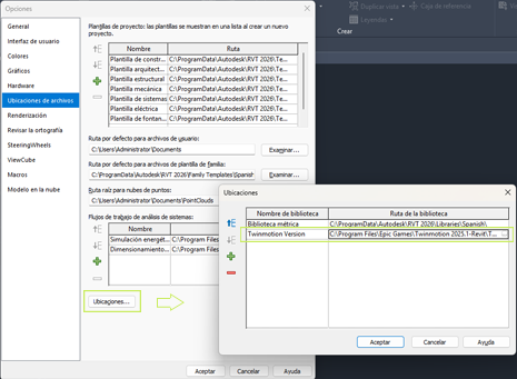 Ubicaciones y añada la ruta de la biblioteca para esta variable correspondiente a la versión de Twinmotion que desee: