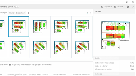 Después de crear un estudio con la función Diseño generativo en Revit, explore los resultados para buscar el que mejor resuelva el desafío de diseño o utilice un resultado como base para un nuevo estudio.