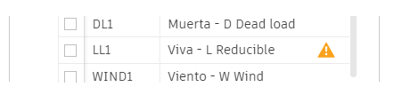 Los casos de carga no ajustados a la norma de diseño seleccionada se marcan una vez seleccionada esta.
