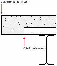 En chapas compuestas grecadas y de hormigón, el parámetro Voladizo de acero siempre será el menor de los dos desfases. Si el forjado estructural está hecho enteramente de hormigón o metal, se deberán configurar los desfases pertinentes.