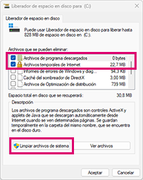 Una vez que se haya producido el problema, borre los archivos de la memoria caché de colaboración, suprima los archivos temporales de Windows, y ejecute el Liberador de espacio en disco de Windows y elimine los archivos temporales de Internet.
