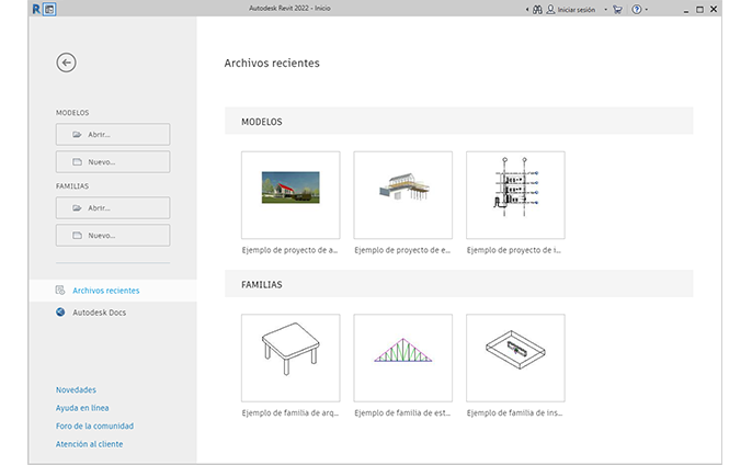 Como antes, también puede utilizar el Inicio de Revit para realizar lo siguiente: