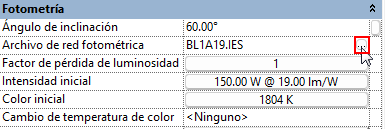 La especificación de un archivo IES para un origen de luz es un procedimiento compuesto de dos pasos: Primero es preciso especificar Red fotométrica para la distribución de luz en la definición de origen de luz. Para ello debe editar la familia de luminarias. Luego debe especificar qué archivo IES utilizar. Puede hacerlo cuando edite la familia de luminarias o al modificar parámetros de tipo para una instalación concreta en un proyecto.