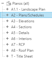 Al añadir planos a un proyecto, aparecen en una lista del Navegador de proyectos en Planos (todo).