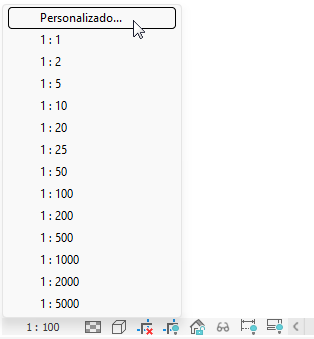 - En la barra de controles de vista, haga clic en Escala de vista y seleccione Personalizado.