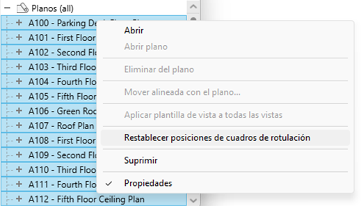 Este comando está disponible cuando se seleccionan varios ejemplares de cuadro de rotulación o varios planos desde el Navegador de proyectos.