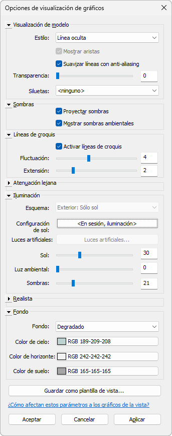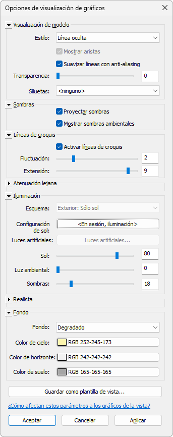 Esta vista utiliza los siguientes parámetros en el cuadro de diálogo Opciones de visualización de gráficos: