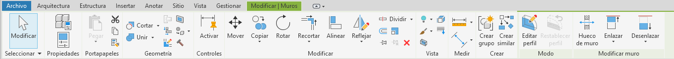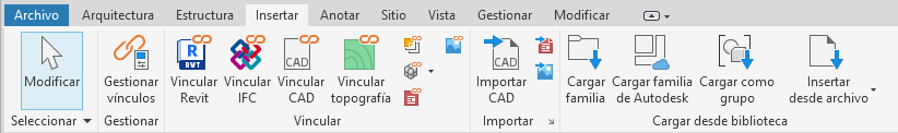 La cinta de opciones aparece al crear o abrir un archivo. Proporciona todas las herramientas necesarias para crear un proyecto o una familia.