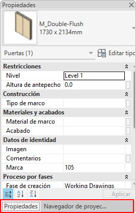 En la imagen siguiente, el Navegador de proyectos y la paleta Propiedades aparecen agrupados. Tenga en cuenta que la paleta Propiedades es la ficha activa.