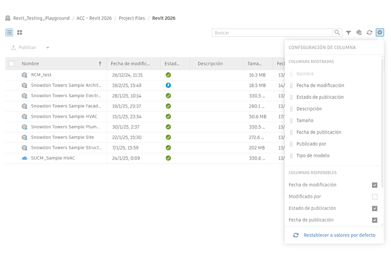 - Filtre por fecha de modificación (Todo, Hoy, La semana pasada, El mes pasado, Últimos 3 ) y tipo (Familias y Modelos).