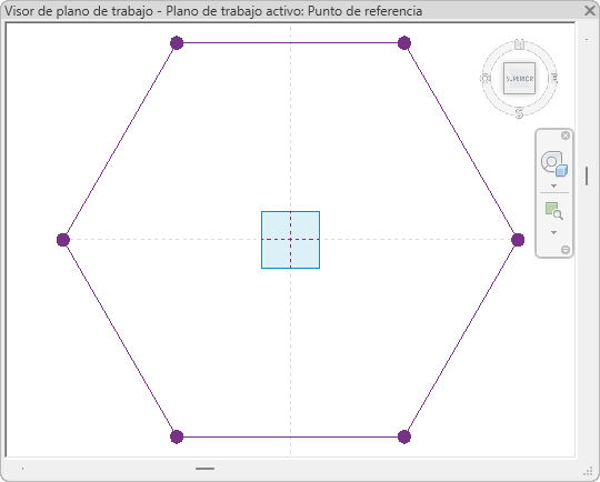 El Visor de plano de trabajo está disponible en todas las vistas de modelo en el entorno del proyecto. La orientación por defecto es el plano de trabajo activo de la última vista activa.