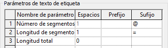 Los parámetros se muestran en los textos de etiquetas del primero al último (de arriba abajo), como aparecen en la lista de la ventana Parámetros de texto de etiqueta. Para modificar el orden, debe resaltar un parámetro y cambiar su posición mediante los botones (Subir parámetro) y