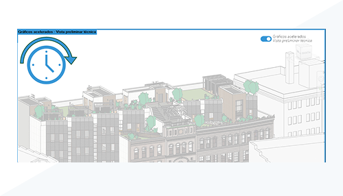 El rendimiento se ha mejorado de media en un 15 % al activar la vista preliminar técnica de gráficos acelerados para la vista actual.