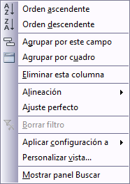 Haga clic con el botón derecho en el encabezado de la columna para personalizar la presentación y la vista de la cola.