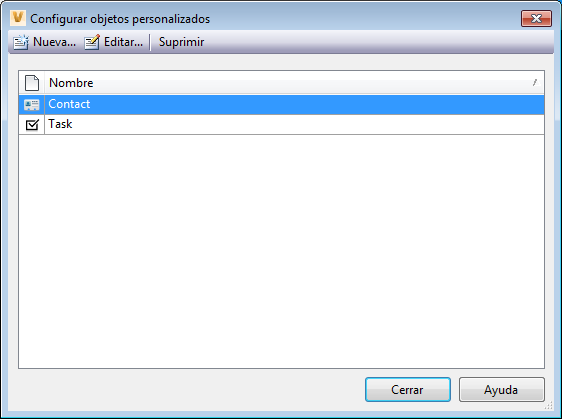 Haga clic en Configurar para abrir el cuadro de diálogo Configurar objetos personalizados.