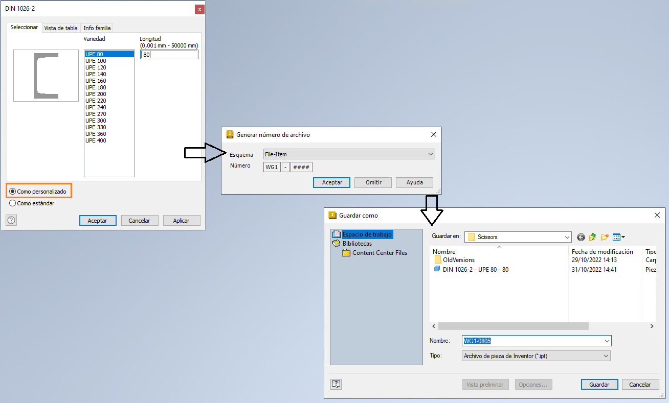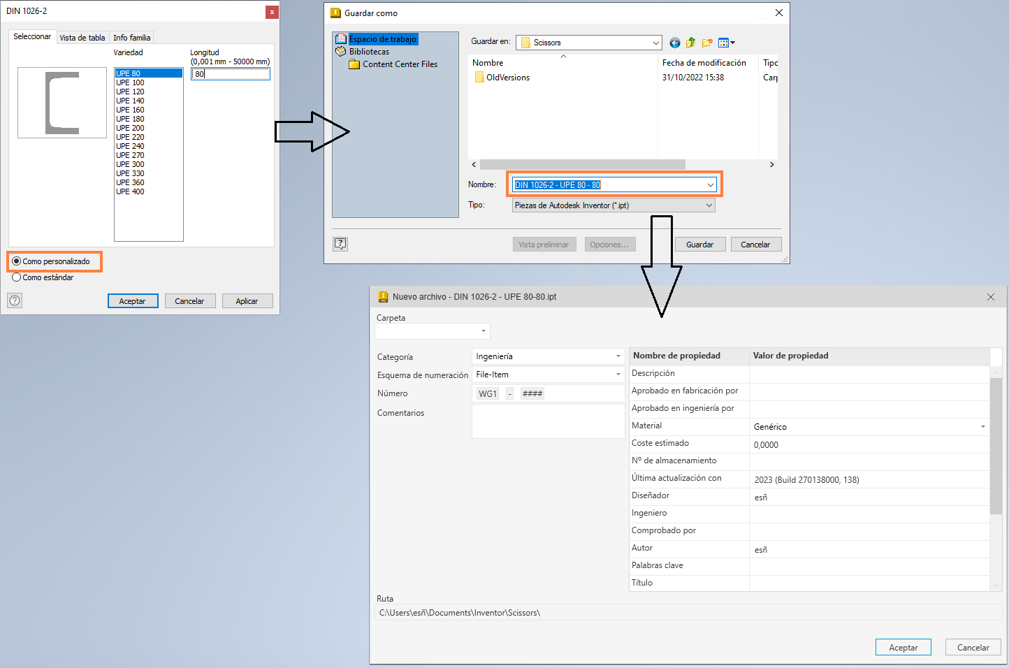 Cuando se añade una pieza del CC como una pieza personalizada, por defecto se suprimen la numeración de archivos de Vault y el guardado de VDS. Puede guardar el componente personalizado del CC en la ruta del proyecto. No hay numeración de archivos ni interacción con VDS.