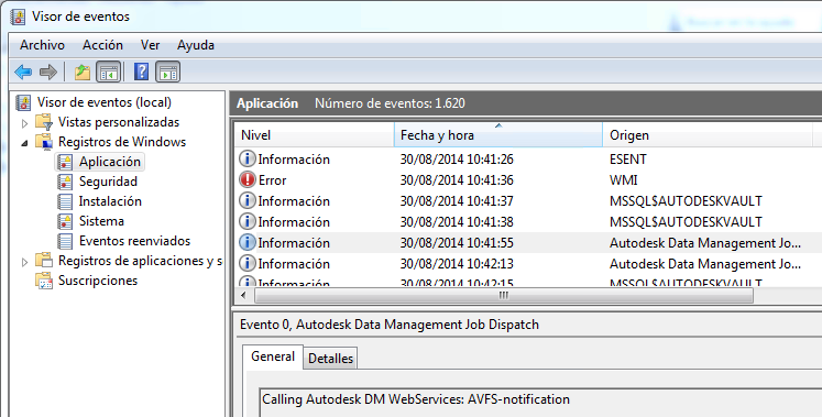El procesador de trabajos registra todos los trabajos en el registro de la aplicación del visor de sucesos en la estación de trabajo. Este registro puede ser útil cuando falla la resolución de problemas o los trabajos están incompletos.