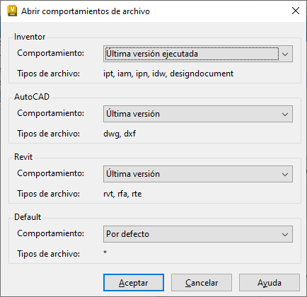 Determine si Inventor, AutoCAD, Revit y archivos se abren por la última versión, la última versión ejecutada o la versión de la aplicación de CAD que guarda el archivo.