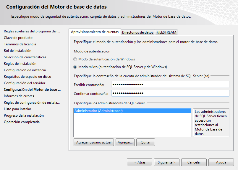 Añada la cuenta de usuario de Windows que está ejecutando el servicio SQL Server. La cuenta por defecto es Servicio de red.