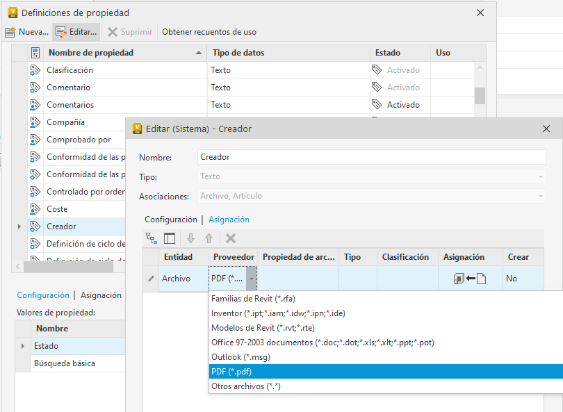 Se ha añadido un nuevo proveedor de propiedades de PDF para administrar las propiedades de archivos PDF en Vault.