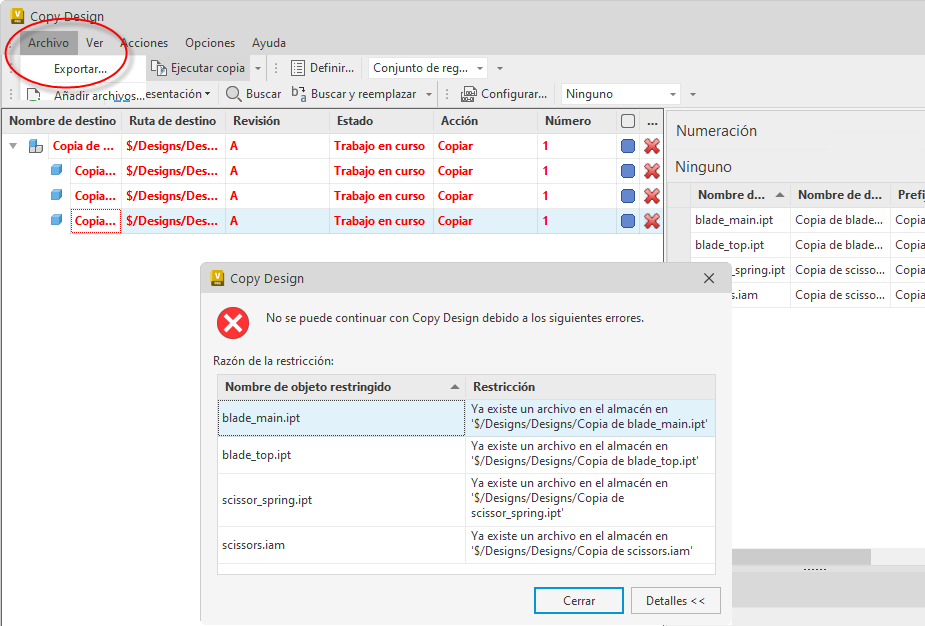 Utilice la función de exportación para exportar los archivos restringidos resaltados durante la operación de copiado.
