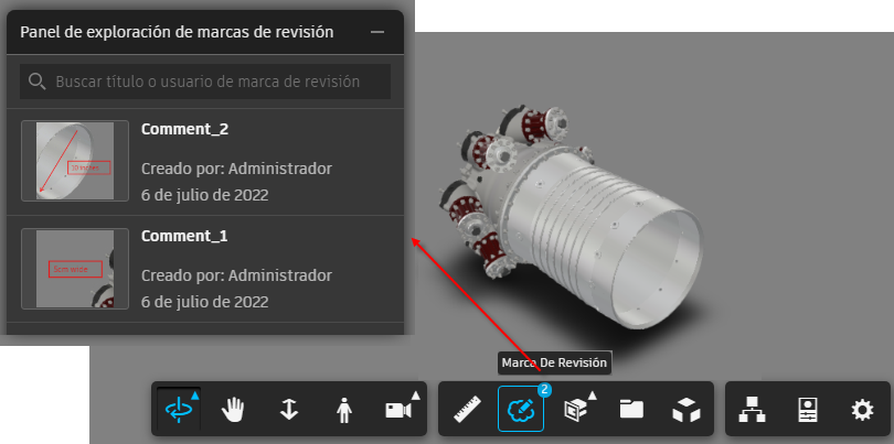 Ahora puede ver un número en el icono de marca de revisión que indica la cantidad de marcas de revisión asociadas con el archivo. Haga clic en el icono de marca de revisión para ver los detalles de la marca de revisión en el panel de exploración de marcas de revisión.