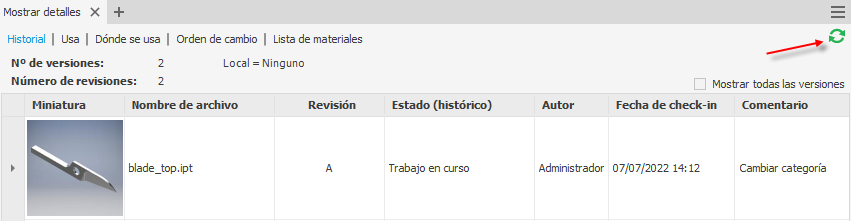 Se ha añadido el botón Actualizar en el panel Mostrar detalles de Inventor/AutoCAD para que se actualice el contenido.