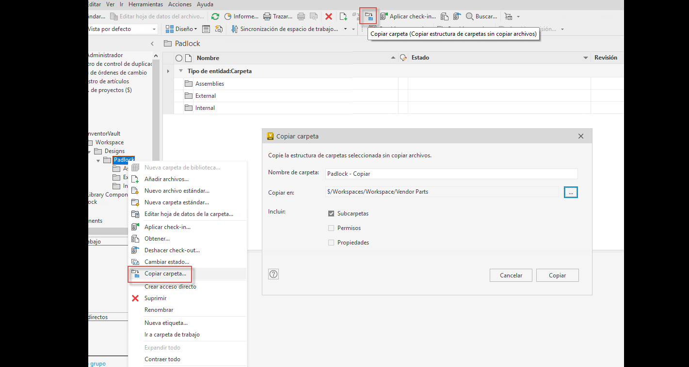 Eliminar objetos de lista de materiales: Copy Design ahora admite la opción de eliminar información de lista de materiales solo dentro de los archivos principales, de modo que se actualiza la información de la lista de materiales de los archivos secundarios durante la copia. Por defecto, la opción "Eliminar objeto de la lista de materiales solo de principales" está activada. Consulte Interfaz de Copiar diseño para obtener más información.