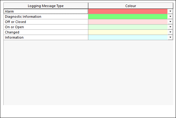 Utilice esta página para ver y cambiar los colores por defecto utilizados por InfoWorks WS Pro en la vista de resultados del registro.