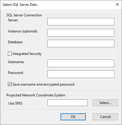 Abre el cuadro de diálogo Seleccionar un SRID proyectado.