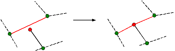 La regla Fusionar nodos (proximidad en línea) se utiliza para buscar pares de nodos conectados a un vínculo dentro de un radio de búsqueda definido por el usuario. Si los nodos/vínculos encontrados cumplen con los parámetros definidos, los nodos se fusionarán y, por lo tanto, se unirán los vínculos conectados.