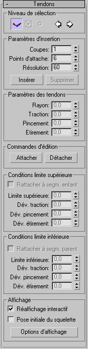 Les commandes des sous-objets Tendon sont regroupées dans le panneau déroulant Tendons.