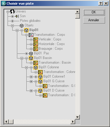 Sélectionnez un assistant Crowd. > Groupe de fonctions Modifier > Panneau déroulant Contrôleurs Clip global > Nouveau > Choisissez un objet Clip global. > Sélectionnez l'objet dans la liste. > Modifier > Boîte de dialogue Synthèse > Groupe de fonctions Clips de séquence > Zone Vue piste > Nouveau > Boîte de dialogue Choisir vue piste