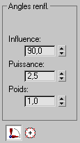 Deux groupes de fonctions permettant de définir des paramètres figurent à droite de l'éditeur de renflements. Le groupe de fonctions Angles renfl. vous permet de modifier les paramètres de renflement de l'angle de renflement actif.