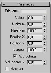 Lorsque les options Min. et Max. correspondent à 0,0 et 100,0 respectivement, la valeur de la glissière peut représenter un pourcentage.