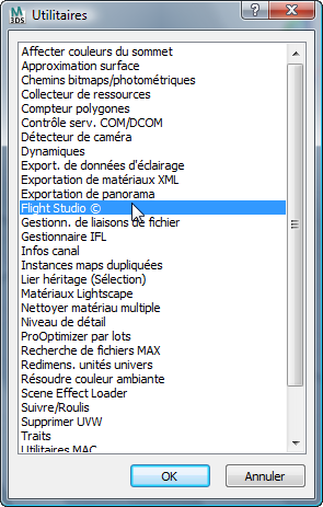 - Dans la boîte de dialogue Utilitaires, sélectionnez Flight Studio, puis cliquez sur OK.