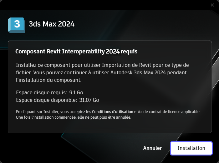 3ds Max inclut un programme d’installation à la demande pour les importations Revit et Inventor, ce qui vous permet d’installer les composants d’
