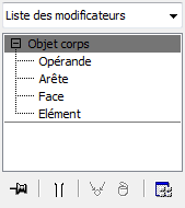 Lorsque vous travaillez avec des objets corps (mais également avec les objets Joindre corps et Découpe corps) dans 3ds Max, quatre niveaux sous-objets sont disponibles dans la pile de modificateurs : Opérande, Arête, Face et Elément.