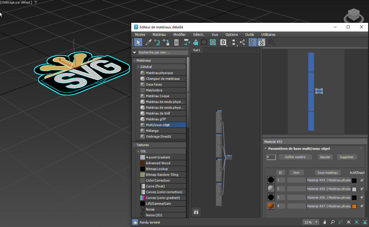 Logo W3C SVG importé et affiché avec les options de l’éditeur de matériaux détaillé