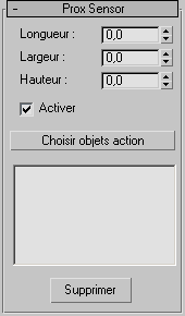 Active le Proximity Sensor. Lorsque cette case est désactivée, le capteur n'a aucun effet, même si des objets sont sélectionnés.