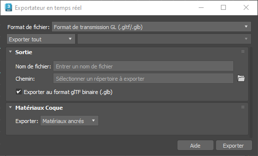 L'exportateur en temps réel prend également en charge l'exportation d'actifs au format glTF.