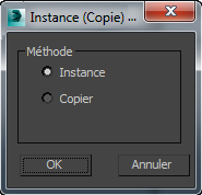 3ds Max ouvre une boîte de dialogue Instance (Copie). Choisissez Instance, puis cliquez sur OK.
