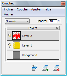 Lorsque vous activez un outil de peinture dans la fonction Fenêtre toile, la boîte de dialogue Couches s'ouvre par défaut ; vous pouvez activer ou désactiver la boîte de dialogue à l'aide du bouton Couches de la boîte de dialogue Fenêtre toile. Pour plus d'informations sur l'utilisation des couches dans la fonction Fenêtre toile, reportez-vous à la rubrique cette procédure et le reste de cette section.