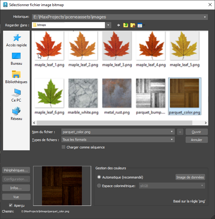 3ds Max ouvre la boîte de dialogue Sélectionner fichier image bitmap.