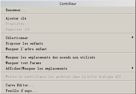 Le menu contextuel des noeuds du contrôleur est similaire à celui des noeuds de matériaux et de maps. Toutefois, il comporte certaines options supplémentaires pour la création d'animations.