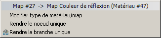 Après avoir cliqué avec le bouton droit sur un fil entre le bitmap et le matériau, sélectionnez Rendre la branche unique