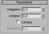 La plupart des formes à base de splines partagent ces paramètres. Pour plus de détails, reportez-vous aux rubriques Panneau déroulant Rendu et Panneau déroulant Interpolation.