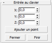 L’entrée au clavier pour les lignes diffère de celle des autres splines. Les valeurs entrées au clavier ajoutent des sommets à la ligne existante jusqu'à ce que vous cliquiez sur Fermer ou Terminer.